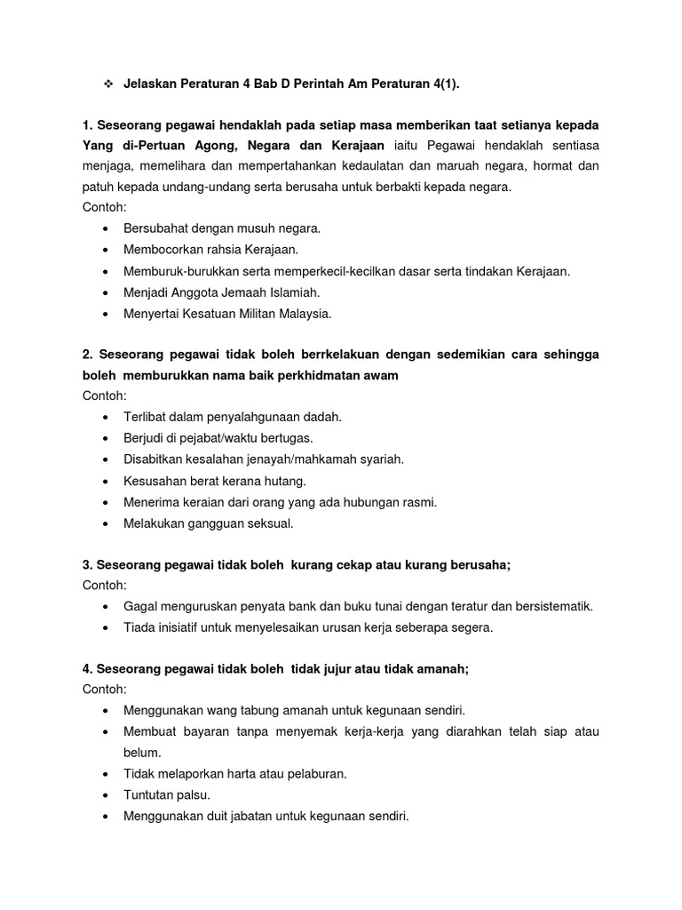 Jelaskan Peraturan 4 Bab D Perintah Am Peraturan 1 Pdf