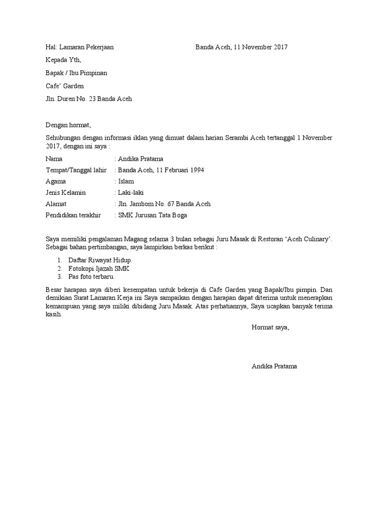 4 Contoh Surat Lamaran Kerja Di Cafe Dan Cara Membuatnya