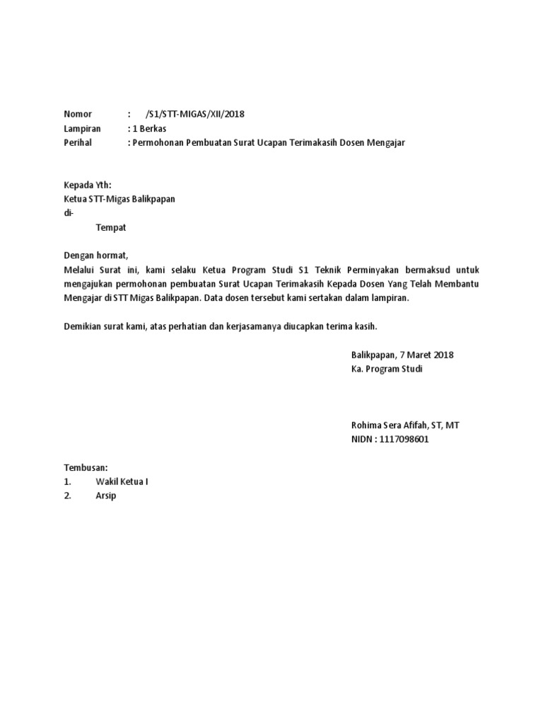 Surat Permohonan Ucapan Terimakasih Pdf